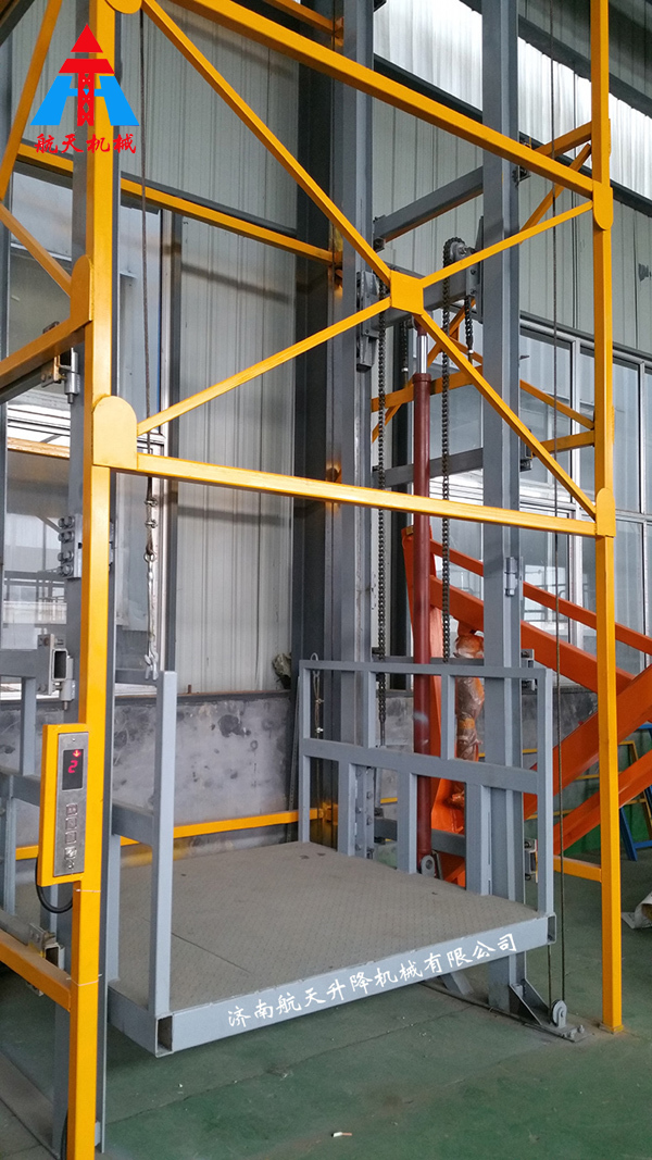 導(dǎo)軌式升降貨梯是依靠液壓系統(tǒng)作為動(dòng)力單元,采用液壓油缸作為主要?jiǎng)恿Γㄟ^電機(jī)驅(qū)動(dòng)液壓油泵,使油缸直頂,驅(qū)動(dòng)重型鏈條和油絲繩運(yùn)動(dòng),從而帶動(dòng)貨梯平臺(tái)在軌道間平穩(wěn)運(yùn)行,是用于建筑層樓間、廠房、工廠、倉庫運(yùn)送貨物的專用液壓升降設(shè)備,起升高度從1米至20米不等,載重量從300公斤至30噸不等,是目前貨物運(yùn)輸?shù)妮^為理想的設(shè)備選擇。